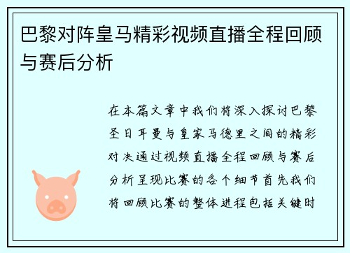 本篇文章围绕勇士与公牛的常规赛对决进行深入分析,旨在全面回顾这场激烈的比赛,并对球员表现及战术布局进行详细探讨。首先,我们将从比赛的整体走势入手,分析两队在攻防两端的策略和应对。接着,将重点解析双方核心球员的表现及其对比赛结果的影响。随后,讨论教练在赛中的战术调整和临场指挥如何改变比赛节奏。最后,通过数据统计来总结这场比赛的关键点,为读者呈现一幅生动而详实的赛事全景。整篇文章力求深入浅出,让每位篮...